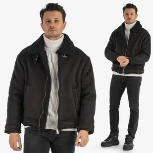 Kurtka Męska Kożuch Z Kołnierzykiem Pilotka Ocieplana Czarna M Czarny męski kożuch wykonany z miękkiego, przyjemnego w dotyku materiału to idealny wybór dla osób poszukujących ciepłej, komfortowej i stylowej kurtki na zimę. Model wyróżnia się nieodpinanym kołnierzem wyłożonym gęstym, futrzanym ociepleniem, które doskonale chroni przed wiatrem i niską temperaturą, zapewniając jednocześnie modny i nowoczesny wygląd. Dzięki rozpinanemu frontowi, miękkiej konstrukcji oraz klasycznemu krojowi kurtka świetnie sprawdza się zarówno na co dzień, jak i w bardziej dopracowanych stylizacjach, czyniąc zakup racjonalnym i praktycznym na wiele sezonów. PARAMETRY I NAJWAŻNIEJSZE INFORMACJE: Kolor: głęboka czerń idealna do zimowych stylizacji Materiał: