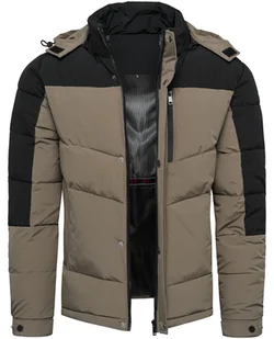 Kurtka męska ocieplana z odczepianym kapturem czarno-szara Recea