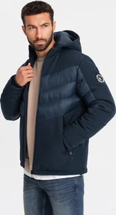 Kurtka męska Ombre Pikowana kurtka męska z łączonych materiałów z wysokim kołnierzem granatowa V2 OM-JALP-0172 L