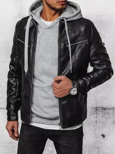 Rewelacyjna męska kurtka skórzana. Wykonana ze skóry ekologicznej. Zapinana na zamek błyskawiczny. Kołnierz typu stójka zapinany na napę. Dwie kieszenie zewnętrzne.