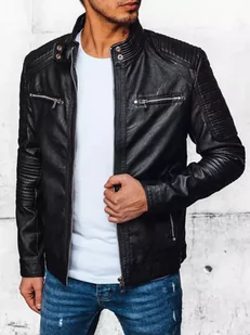 Rewelacyjna męska kurtka skórzana. Wykonana ze skóry ekologicznej. Zapinana na zamek błyskawiczny. Kołnierz typu stójka zapinany na napy. Cztery kieszenie ze...