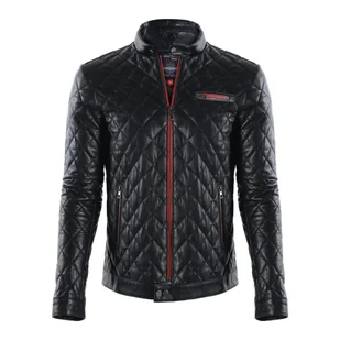 Niska stójka zapinana na zatrzask, podkreślająca nowoczesny charakter Kieszenie: Trzy zasuwane kieszenie – praktyczne i stylowe Detale: Pikowana skóra oraz kontrastowe lamówki przy zamkach, dodają kurtce wyjątkowego wyglądu Wykończenie: Mankiety i dół zapinane na zatrzask dla lepszego dopasowania Podszewka: zapewnia komfort termiczny Krój: