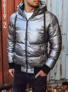 Kurtka męska zimowa z kapturem srebrna Dstreet TX3948-XXL
