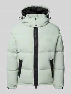Kurtka puchowa męska HUGO;Model ‘Birono’;Efekt: jednolity kolor;Krój: Krój regular fit ;Kształt kołnierza: odpinany kaptur, stójka;Zapięcie: Zamek błyskawiczny dwustronny;Aplikacja: