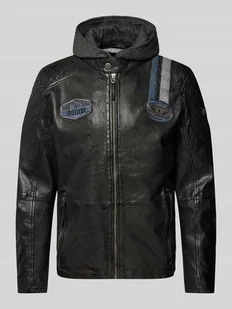 Kurtka skórzana męska Gipsy 2.0;Prosty krój;Kaptur;Model ‘TINON’;Zapięcie na zamek błyskawiczny i zatrzaski;Naszywki z motywem;Boczne kieszenie zapinane na zamek błyskawiczny