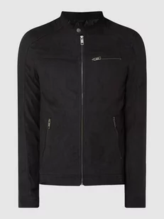 Kurtka męska JACK & JONES;Wytrzymały materiał;Prosty krój;Styl Biker;Wąska stójka z patką na zatrzask;Zamek błyskawiczny;Kieszenie zapinane na zamek błyskawiczny;Długość tyłu w rozmiarze M: 65 cm;Szerokość ramion w rozmiarze M: 45 cm;Długość rękawa w rozmiarze M: 67 cm