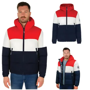 Zimowa Kurtka Puchowa Captain Mike Sailing – Trójkolorowa, z kapturem. Męska kurtka zimowa Captain Mike Sailing to połączenie funkcjonalności i modnego, sportowego stylu inspirowanego żeglarstwem. Utrzymana w nowoczesnym trójkolorowym wzornictwie – granat, biel i czerwień – zapewnia nie tylko doskonałą ochronę przed zimnem, ale również wyjątkowy, dynamiczny wygląd. Kurtka jest lekka, wygodna i ocieplona wysokiej jakości wypełnieniem syntetycznym, które skutecznie chroni przed mrozem i wiatrem. Marka: Captain Mike Kolor: