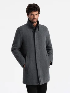 Męski płaszcz zimowy z wełną i pikowaną podpinką grafitowy melanż V1 OM-COWC-0116 S