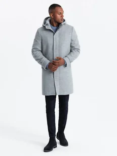 Monochromatyczny długi męski płaszcz z kapturem szary melanż V1 OM-COWC-22FW-005 S