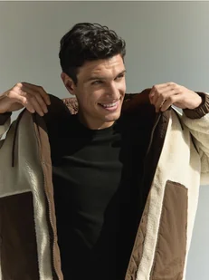 Kurtka typu sherpa, wykonana z łączonych materiałów.