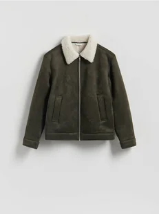 Reserved - Kurtka sherpa z kołnierzem - ciemnozielony