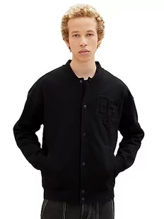 TOM TAILOR Denim Męska kurtka typu Relaxed Fit College z logo z materiału frotte, 29999-czarny, S