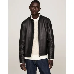 Tommy Hilfiger Kurtka skórzana Racer MW0MW41961 Czarny Regular Fit