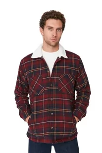 Trendyol Męska kurtka z klapą, w kratę, regularny płaszcz, bordowy, S, Burgund