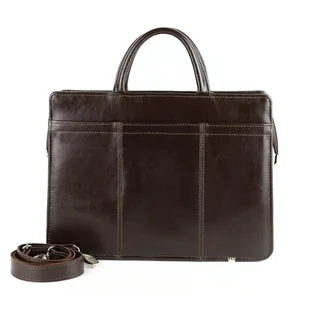 Wymiary (cm): 39x28,5x13 Elegancka, wykonana z naturalnych skór bydlęcych teczka. Wewnątrz znajdują się dwie komory, oddzielone od siebie za pomocą przegrody zasuwanej na suwak. Z przodu i z tyłu stworzyliśmy kieszenie. Ta przednia na całej długości zapinana na rzep.