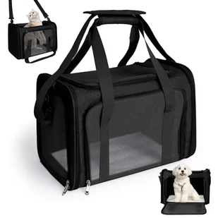 AiQInu Torba transportowa dla kotów i psów, składany plecak dla kotów z regulowanym paskiem na ramię, torba transportowa dla psów kotów nośność 3-6 kg, dla średnich psów kotów w samolocie, czarny