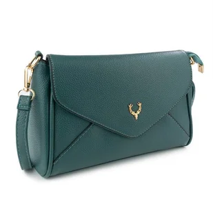 Alessio TOREBKA Damska CROSSBODY KOPERTOWKA LISTONOSZKA na ramię PASEK zielona elegancka mała miejska Torebka damska Alessio crossbody to praktyczne połączenie kopertówki i listonoszki, które sprawdza się w codziennym użytkowaniu oraz przy bardziej dopracowanych stylizacjach. Smukła forma, eleganckie złote okucia i głęboki odcień ciemnej morskiej zieleni wpadającej w zieleń butelkową nadają całości wyrazisty, kobiecy charakter. To model, który dobrze prezentuje się noszony na ramieniu i wygodnie uzupełnia zarówno styl miejski, jak i bardziej klasyczne zestawy. Przemyślany układ wnętrza pozwala wygodnie uporządkować najpotrzebniejsze rzeczy, a regulowany, odpinany pasek daje większą swobodę noszenia. Torebka nie zajmuje dużo miejsca, ale oferuje dobrze rozplanowaną przestrzeń z komorą główną, dodatkowymi kieszeniami i podszewką.