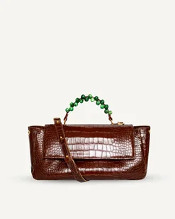 Audrey Baguette skóra tłoczona na wzór krokodyla i zielony malachit