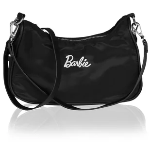 Mała, czarna torebka wykonana z miękkiego materiału z regulowanym i odpinanym paskiem oraz rączką do trzymania w dłoni. Zgrabny model, który pomimo niewielkich rozmiarów doskonale pomieści telefon, portfel, klucze czy inne kobiece gadżety. Torebka zapinana na zamek, wewnątrz wykończona estetyczną podszewką w kolorze czarnym, na przodzie biały napis Barbie. Wyjątkowy model, który z pewnością będzie się cieszył dużym powodzeniem u miłośniczek mody. Wymiary produktu: