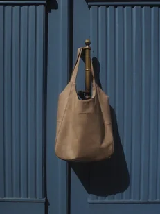 Beżowa miękka skórzana torba typu worek