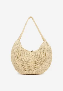 Beżowa Pleciona Torebka na Ramię o Półokrągłym Kształcie Genvia