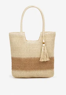Beżowa Pleciona Torebka z Dwiema Rączkami i Dekoracyjnymi Frędzlami Ibernia