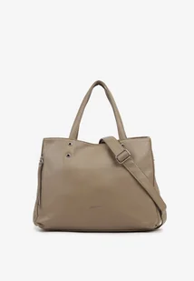 Beżowa Torebka Dwukomorowa Shopperka z Ozdobnym Suwakiem Sorlienne