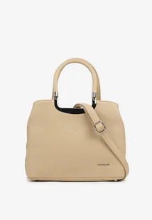 Beżowa Torebka z Rączką i Paskiem Mała Prostokątna Clariara