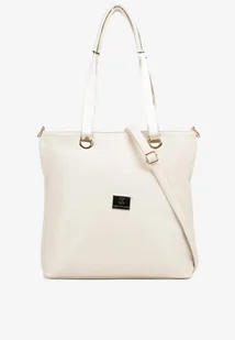 Beżowo-Kremowa Torebka Typu Shopperka Ozdobiona Metalicznymi Aplikacjami Gonevia