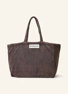 Tkanina. Materiał frotte. Dwa uchwyty do noszenia. Wewnątrz jedna komora główna. Naszywka z marką z przodu