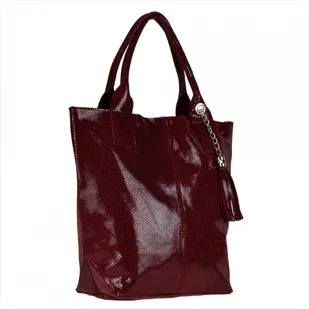 Bordowa torebka shopper skórzana XL plaster miodu Indeks: 454 W naszej ofercie proponujemy Paniom torebkę skórzaną XL produkcji włoskiej w kolorze bordowym bardzo lekką, pojemną, wygodną, mieszczącą format A4. Wykonana jest ona z bardzo miękkiej naturalnej skóry włoskiej najwyższej jakości o ciekawej strukturze i kolorze. Zdjęcie nie oddaje w pełni uroku tej torebki, w rzeczywistości opisywany model jest jeszcze ładniejszy i bardzo ślicznie mieni się wzór wężowej skóry. Będzie na pewno ozdobą każdego stroju kobiety.