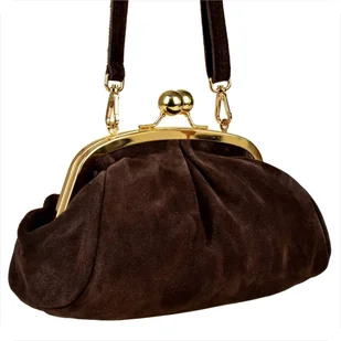 Borse In Pelle mała torebka retro skóra nat zamszowa czekolada brąz Indeks: 3369 Proponujemy Paniom super torebkę skórzaną listonoszkę w stylu retro zapinana za złote kulki w nowym fasonie produkcji włoskiej w rozmiarze S kolor brąz czekolada. skóra zamszowa Torebka posiada zgrabny wygląd jest bardzo lekka, wygodna, elegancka oraz świetnie pomieści najpotrzebniejsze rzeczy, które chcemy mieć pod ręką. Wyprodukowana została ze starannie wyselekcjonowanych skór naturalnych. Pasuje do wielu różnych stylizacji i wyróżnia się doskonałą jakością wykonania.