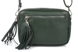 Ciemno- zielona torebka damska listonoszka skórzana z frędzlem modna C74