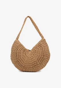 Ciemnobeżowa Pleciona Torebka na Ramię o Półokrągłym Kształcie Genvia
