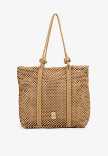 Ciemnobeżowa Torebka Typu Shopper z Plecionki Reviane