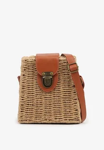 Ciemnobeżowa Trapezowa Torebka Listonoszka z Plecionki Felonira