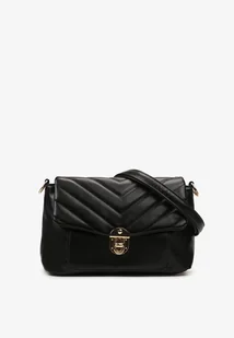 Czarna Torebka Kopertówka z Odpinanym Paskiem i Złotymi Detalami Muintessa