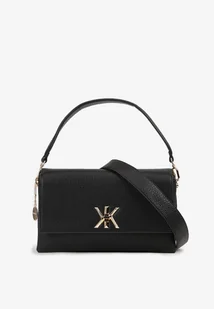 Czarna Torebka Kopertówka z Rączką i Paskiem Ozdobiona Złotym Detalem Melintinnia