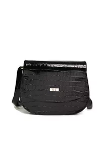 Elegancka czarna listonoszka lakierowana o klasycznym kształcie. Motyw skóry krokodyla to najmodniejszy wzór wśród kobiet w każdym wieku. Usztywniona, jednok...