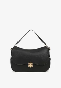 Czarna Torebka Listonoszka na Ramię z Aplikacją na Klapie Adurrive