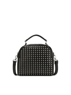 Czarna torebka z miękkiej skóry naturalnej to wyrazisty i elegancki model, który łączy nowoczesny design z funkcjonalnością. Przód torebki zdobią okrągłe metalowe nity w srebrnym kolorze, nadające jej subtelnie rockowy, a zarazem stylowy charakter. Regularny kształt torebki, z szerokim dnem i bokami, zapewnia przestronność i stabilność, idealnie sprawdzając się na co dzień. Model wyposażony jest w wygodną rączkę do noszenia w dłoni oraz odpinany pasek na ramię, co pozwala na dowolność stylizacji. Dzięki połączeniu miękkiej skóry, metalowych zdobień i solidnej konstrukcji, torebka jest praktycznym i modnym dodatkiem, który dodaje charakteru każdej stylizacji.