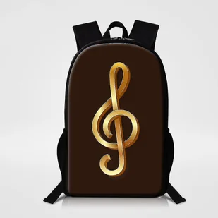 Czarne torby szkolne z nadrukiem skrzypcowym dla dziewczynek Nuta dziecięca sublimacyjny plecak poliestrowy dla chłopców kobiet Torba na ramię-YH 15