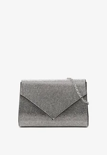 Czarno-Srebrna Kopertówka Torebka Jednokomorowa z Metalowym Łańcuszkiem Zdobiona Cyrkoniami Tiamasia