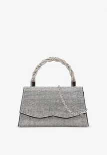 Czarno-Srebrna Mała Torebka z Plecioną Rączką i Łańcuszkiem na Ramię z Cyrkoniami na Zatrzask Teratia