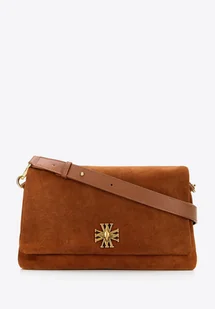 Przemyślana organizacja: Dwie komory z trzema kieszeniami, w tym jedną zapinaną na zamek, zapewniają wygodne rozmieszczenie niezbędnych rzeczy. Design: Klapa z elegancką klamrą z logotypem oraz tłoczone logo producenta na skórze dodają całości unikatowego stylu. Detale: Subtelne logo producenta na metalowych elementach podkreśla elegancki charakter torebki. Skład: 100% skóra zamszowa; podszewka: