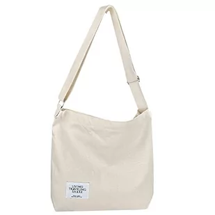 Damska płócienna torba na ramię płócienna torba na ramię, Złamana biel, L, Boho