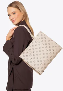 Damska shopperka z ekoskóry z tłoczoną sygnaturą beżowa