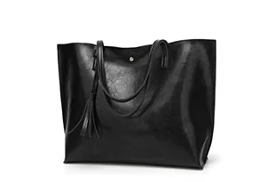 Damska torba na ramię z miękkiej sztucznej skóry firmy Dreubea, torebka z frędzlami o dużej pojemności, Black (New Style)