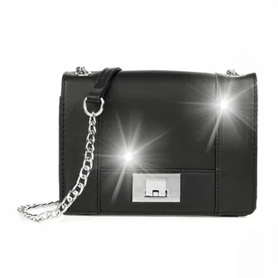 Listonoszka wyposażona jest w srebrny łańcuszek z elementem skóry ekologicznej, aby nie uwierał on w ramię podczas noszenia. Prezentowana jest torebka w kolorze czarnym. Najważniejsze parametry techniczne tego ekskluzywnego produktu: Materiał: Skóra ekologiczna Wielkość: Mała, nie mieszcząca A4 Fason: