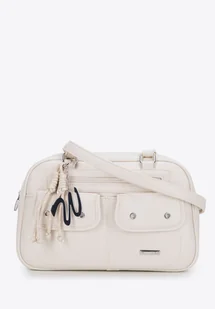 Damska torebka na ramię z imitacji skóry z kieszonkami kremowa